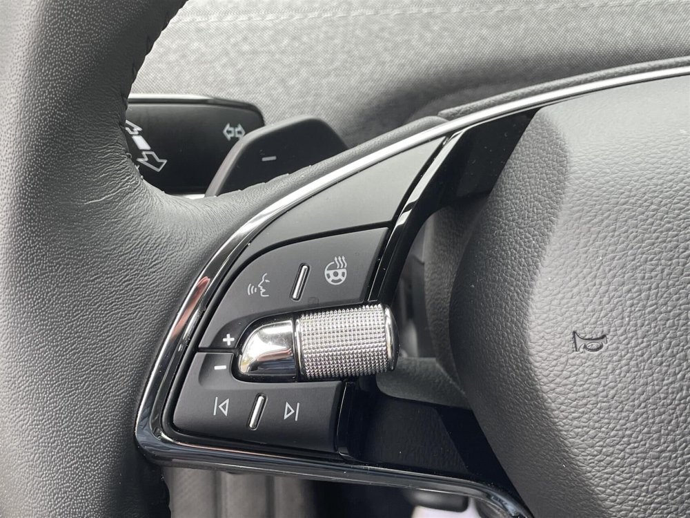 elektrisk kabinevarmer med styring via app, navigation, apple carplay, android auto, håndfrit til mobil, dab+ radio, musikstreaming via bluetooth, kørecomputer, splitbagsæde, ambiente belysning, læderrat, 19" alufælge, el-klapbare sidespejle m/varme, kurvelys, tagræling, tågelygter, mørktonede ruder i bag, automatgear, udv. temp. måler, 4x el-ruder, varme i rat, alarm, træthedsregistrering, airbag, esp, blindvinkelsassistent, automatisk lys, bakkamera, parkeringssensor (for), parkeringssensor (bag), regnsensor, dæktryksmåler, skiltegenkendelse, isofix, fjernlysassistent, vognbaneassistent.