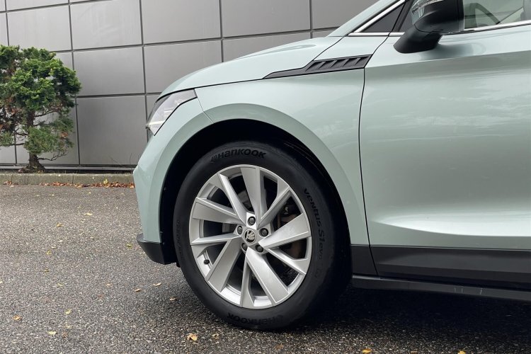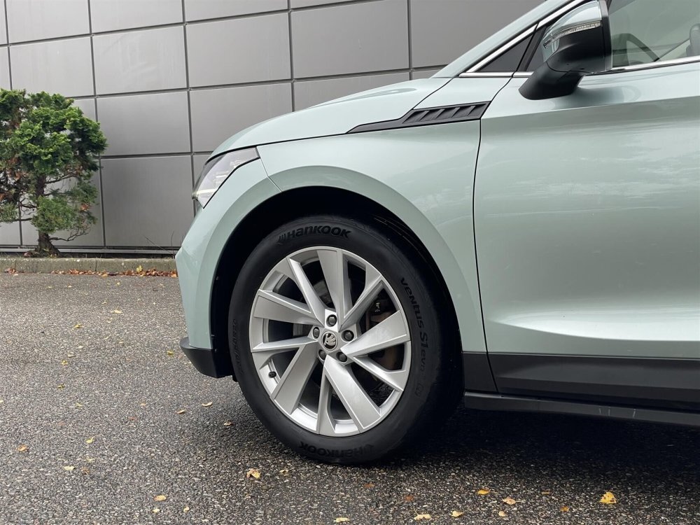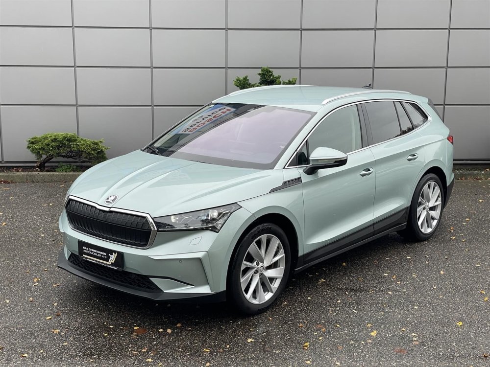 Pæn og velholdt Skoda Enyaq her i den flotte Arctic-Silber Metallic lakering.