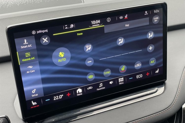 elektrisk kabinevarmer med styring via app, navigation, apple carplay, android auto, håndfrit til mobil, dab+ radio, musikstreaming via bluetooth, usb-c tilslutning, regnsensor, bakkamera, parkeringssensor (for), parkeringssensor (bag), automatisk lys, airbag, dæktryksmåler, skiltegenkendelse, automatisk nødbremsesystem, vognbaneassistent, 4x el-ruder, udv. temp. måler, aut. nedbl. bakspejl, kurvelys, tågelygter, el-klapbare sidespejle m/varme.