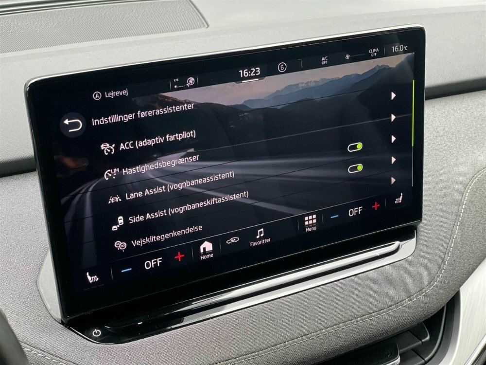 19" alufælge, el-klapbare sidespejle m/varme, kurvelys, tågelygter, udv. temp. måler, 4x el-ruder, airbag, esp, automatisk lys, parkeringssensor (for), parkeringssensor (bag), regnsensor, vognbaneassistent, navigation, apple carplay, android auto, håndfrit til mobil, dab+ radio, musikstreaming via bluetooth, usb-c tilslutning, varme i rat, splitbagsæde, dobbelt bagagerumsbund, delkunstlæderindtræk, højdejust. forsæder