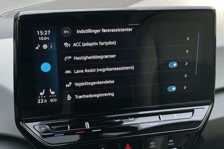 adaptiv fartpilot, 2 zone klima, 4x el-ruder, apple carplay, android auto, navigation, håndfrit til mobil, musikstreaming via bluetooth, usb-c tilslutning, regnsensor, parkeringssensor (for), parkeringssensor (bag), airbag, træthedsregistrering, esp, automatisk lys, skiltegenkendelse, dæktryksmåler, isofix, fjernlysassistent, vognbaneassistent, udv. temp. måler, aut. nedbl. bakspejl, sædevarme, el-klapbare sidespejle m/varme, kurvelys, splitbagsæde, ambiente belysning, højdejust. førersæde, læderrat, tågelygter, mørktonede ruder i bag.