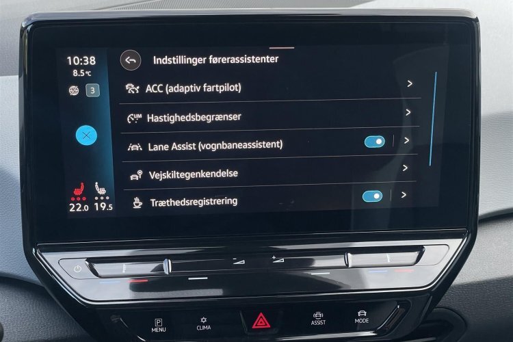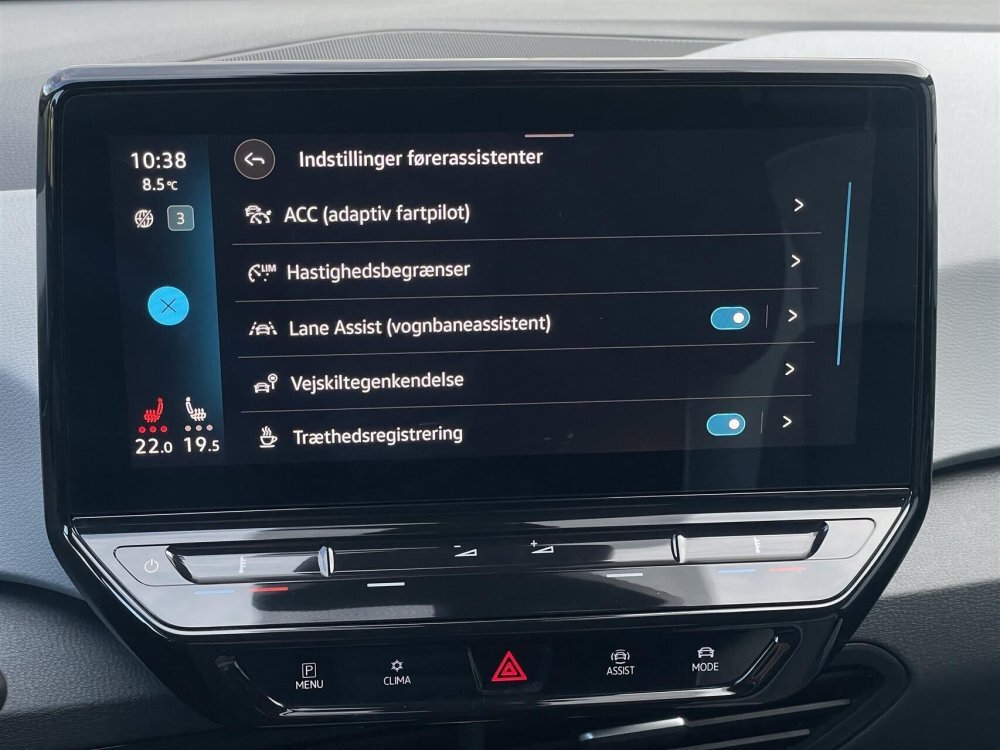 adaptiv fartpilot, 2 zone klima, 4x el-ruder, apple carplay, android auto, navigation, håndfrit til mobil, musikstreaming via bluetooth, usb-c tilslutning, regnsensor, parkeringssensor (for), parkeringssensor (bag), airbag, træthedsregistrering, esp, automatisk lys, skiltegenkendelse, dæktryksmåler, isofix, fjernlysassistent, vognbaneassistent, udv. temp. måler, aut. nedbl. bakspejl, sædevarme, el-klapbare sidespejle m/varme, kurvelys, splitbagsæde, ambiente belysning, højdejust. førersæde, læderrat, tågelygter, mørktonede ruder i bag.