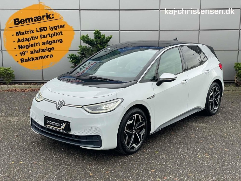 Pæn og velholdt VW id.3 her den den flotte hvid metallic lakering med sort tag.