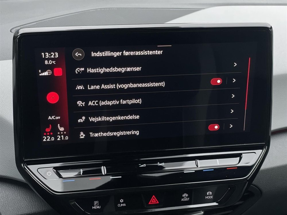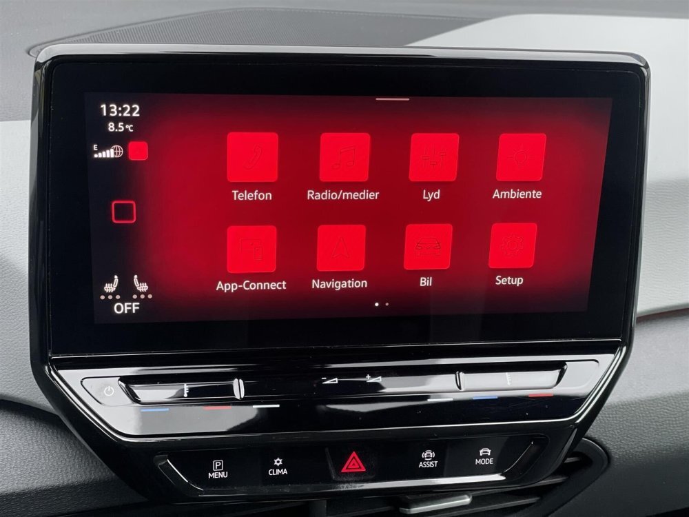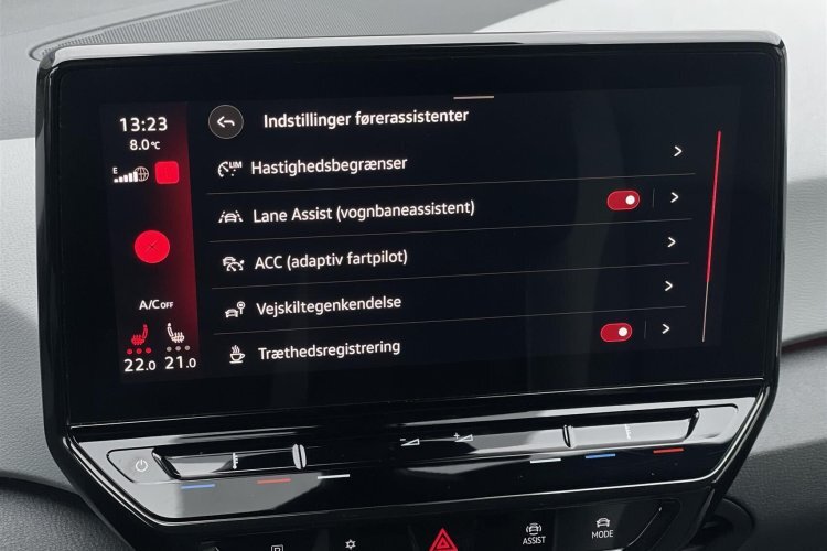 elektrisk kabinevarmer med styring via app, adaptiv fartpilot, 2 zone klima, 4x el-ruder, apple carplay, android auto, navigation, håndfrit til mobil, musikstreaming via bluetooth, usb-c tilslutning, regnsensor, parkeringssensor (for), parkeringssensor (bag), airbag, træthedsregistrering, esp, automatisk lys, skiltegenkendelse, dæktryksmåler, isofix, fjernlysassistent, vognbaneassistent, udv. temp. måler, aut. nedbl. bakspejl, sædevarme, el-klapbare sidespejle m/varme, kurvelys, splitbagsæde, ambiente belysning, højdejust. førersæde, læderrat, tågelygter, mørktonede ruder i bag.