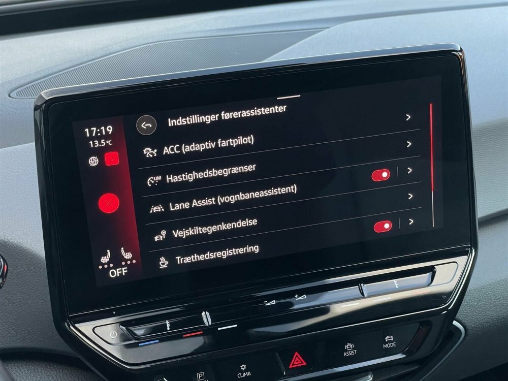 apple carplay, android auto, håndfrit til mobil, musikstreaming via bluetooth, dab+ radio, usb-c tilslutning, splitbagsæde, ambiente belysning, læderrat, højdejust. førersæde, el-klapbare sidespejle m/varme, fuld led forlygter, udv. temp. måler, nøglefri tænding, elektrisk kabinevarmer, multifunktionsrat, kørecomputer, 2 zone klima, aut. nedbl. bakspejl, el-ruder, airbag, regnsensor, parkeringssensor (for), parkeringssensor (bag), skiltegenkendelse, automatisk lys, isofix, vognbaneassistent, automatisk nødbremsesystem.