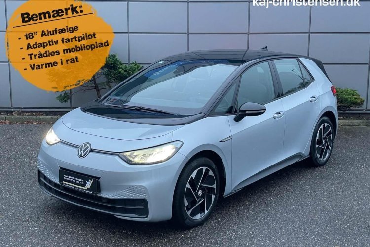 Pæn og velholdt VW id.3 her i en flot sølv metallic lakering med sort tag.