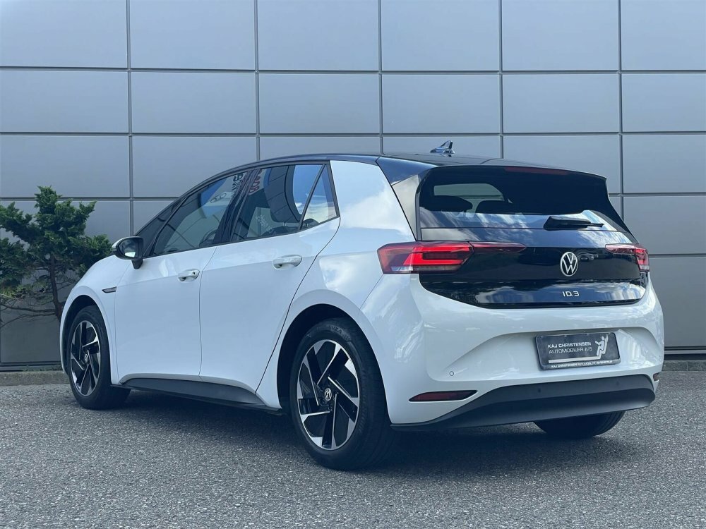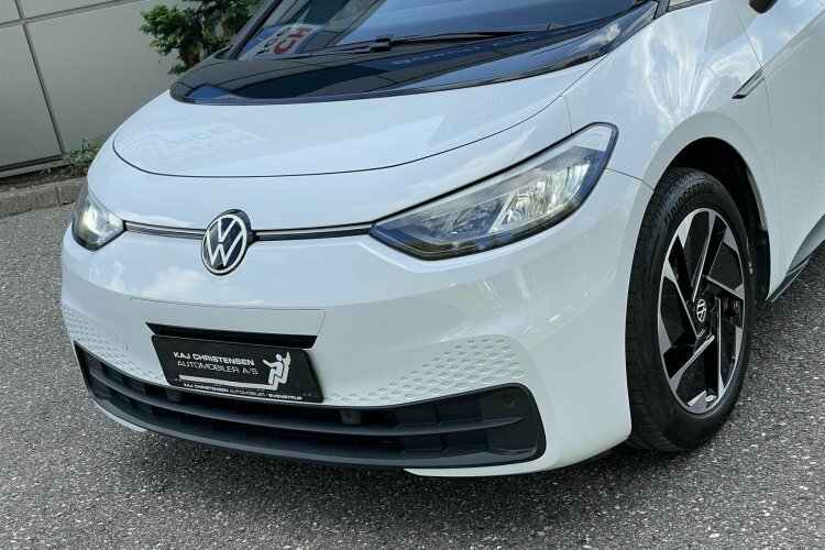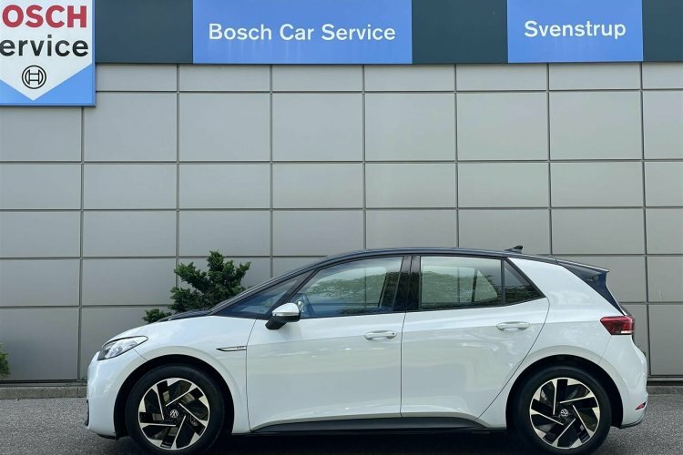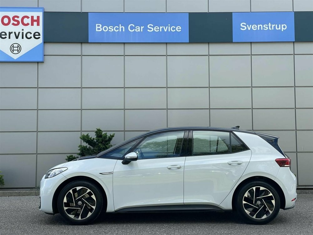 Pæn og velholdt VW Id.3 her i den smarte Gletscherweiß Metallic lakering. Bemærk versionen med 204 hk som samtidig har 3 faset hjemme opladning samt hurtigere offentlig hurtig opladning.