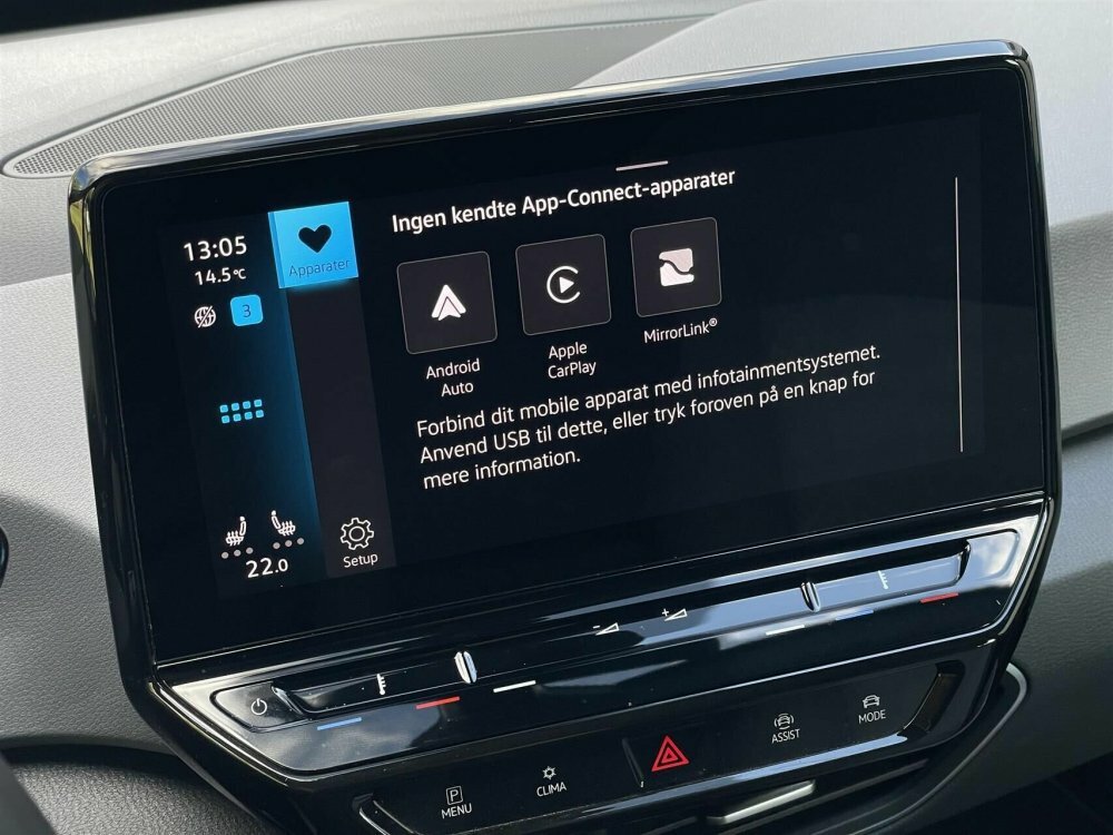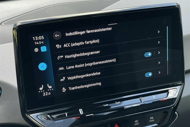 kabinevarmer med styring via app, navigation, apple carplay, android auto, håndfrit til mobil, musikstreaming via bluetooth, dab+ radio, usb-c tilslutning, splitbagsæde, læderrat, el-klapbare sidespejle m/varme, led forlygter + led baglygter, nøglefri tænding, udv. temp. måler, 4x el-ruder, app integration, fuldaut. klima, sædevarme, varme i rat, airbag, esp, automatisk nødbremsesystem, automatisk lys, parkeringssensor (for), parkeringssensor (bag), regnsensor, dæktryksmåler, isofix, vognbaneassistent.