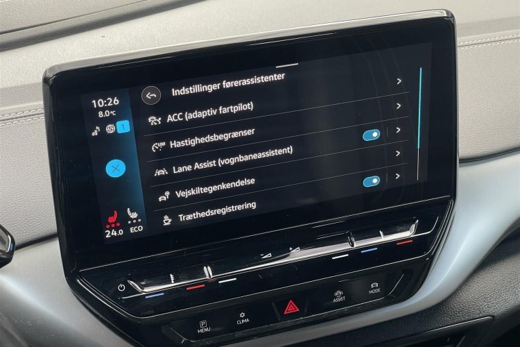 Elektrisk kabinevarmer med styring via app, navigation, apple carplay, android auto, håndfrit til mobil, dab+ radio, musikstreaming via bluetooth, usb-c tilslutning, parkeringssensor (for), parkeringssensor (bag), airbag, vognbaneassistent, automatisk lys, isofix, skiltegenkendelse, dæktryksmåler, regnsensor, 3 zone klima, varme i rat, nøglefri tænding, nøglefri adgang, udv. temp. måler, 4x el-ruder, aut. nedbl. bakspejl, adaptiv fartpilot, sædevarme, trådløs mobilopladning, el-klapbare sidespejle m/varme, tagræling, fuld led forlygter, kørecomputer, multifunktionsrat, delkunstlæderindtræk, højdejust. forsæder, splitbagsæde, læderrat, dobbelt bagagerumsbund