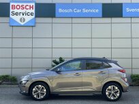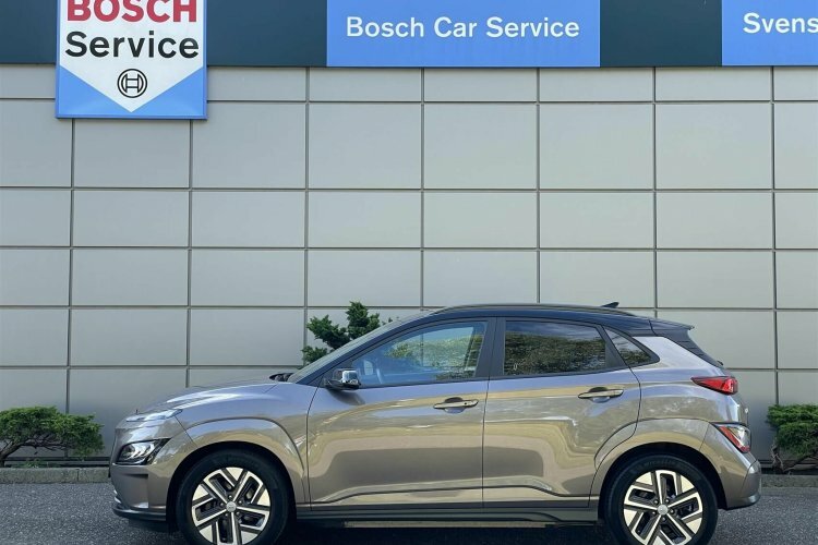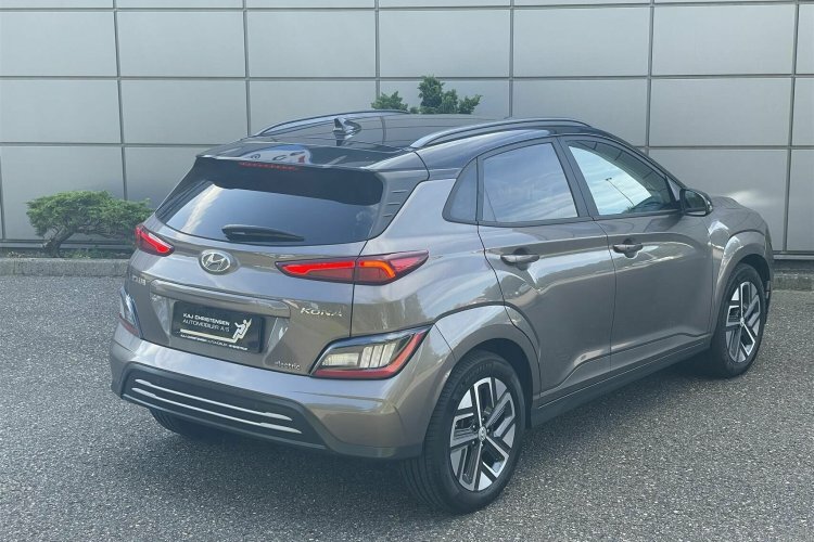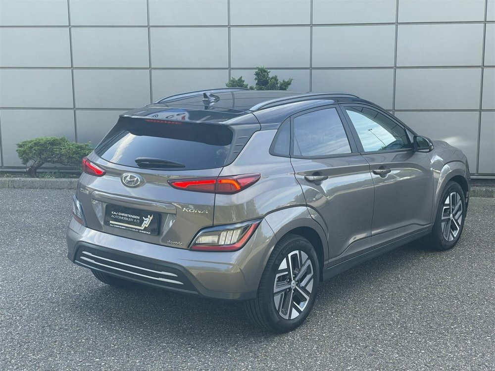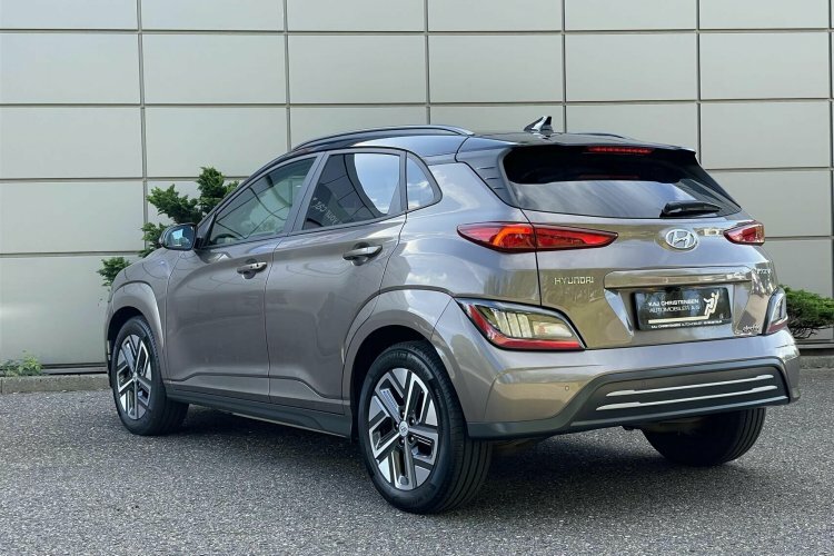 Pæn og velholdt Hyundai Kona her i den flotte brunmetallic lakering med sort tag.