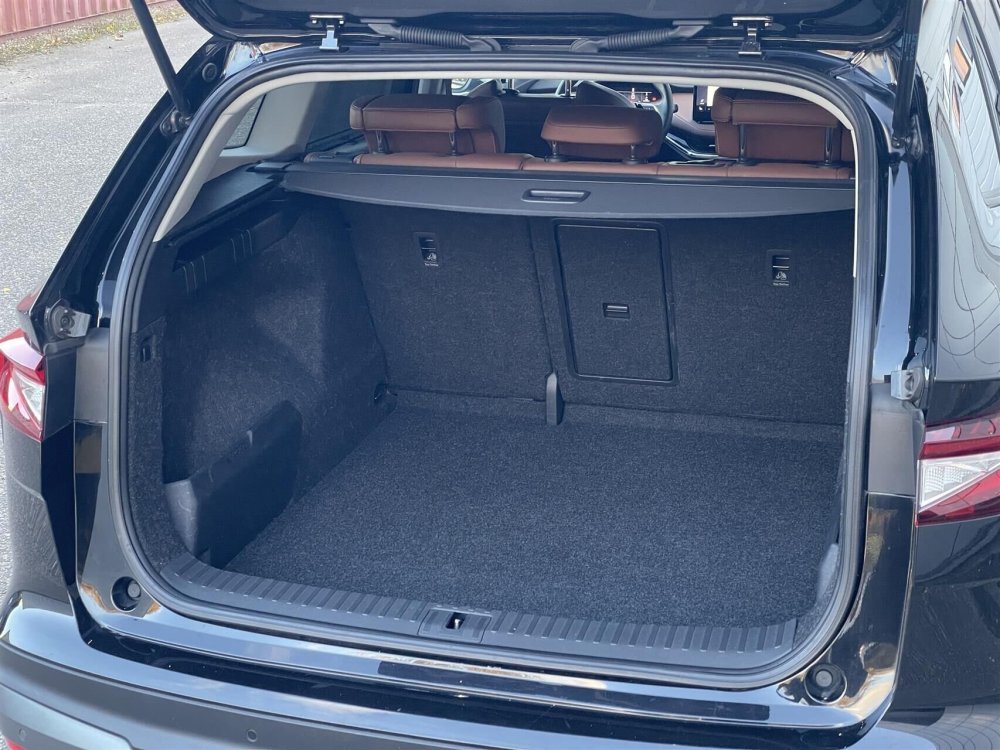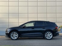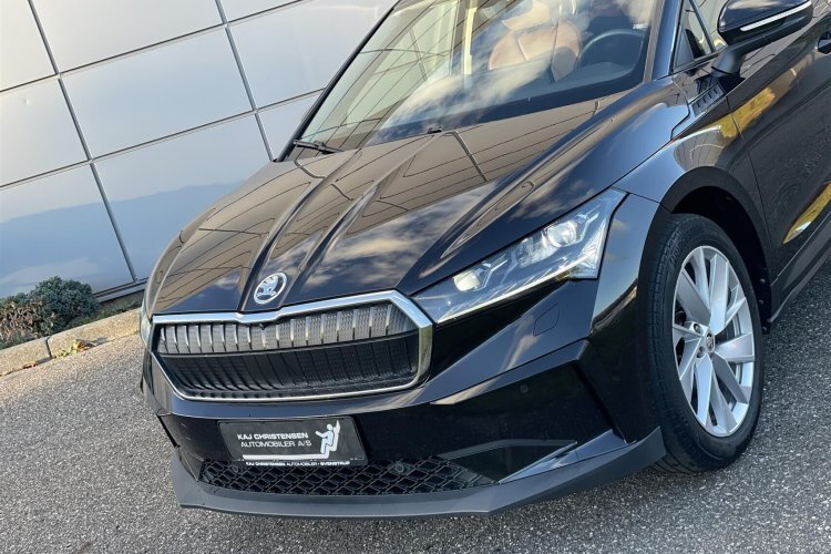 Velholdt Skoda Enyaq her i den elegante farve kombination sort Metallic lakering med brun læder interiør.