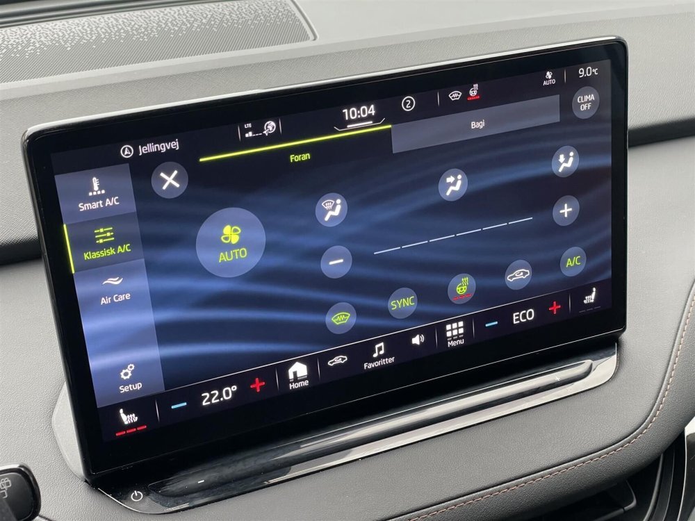 elektrisk kabinevarmer med styring via app, navigation, apple carplay, android auto, håndfrit til mobil, dab+ radio, musikstreaming via bluetooth, usb-c tilslutning, regnsensor, bakkamera, parkeringssensor (for), parkeringssensor (bag), automatisk lys, airbag, dæktryksmåler, skiltegenkendelse, automatisk nødbremsesystem, vognbaneassistent, 4x el-ruder, udv. temp. måler, aut. nedbl. bakspejl, kurvelys, tågelygter, el-klapbare sidespejle m/varme.