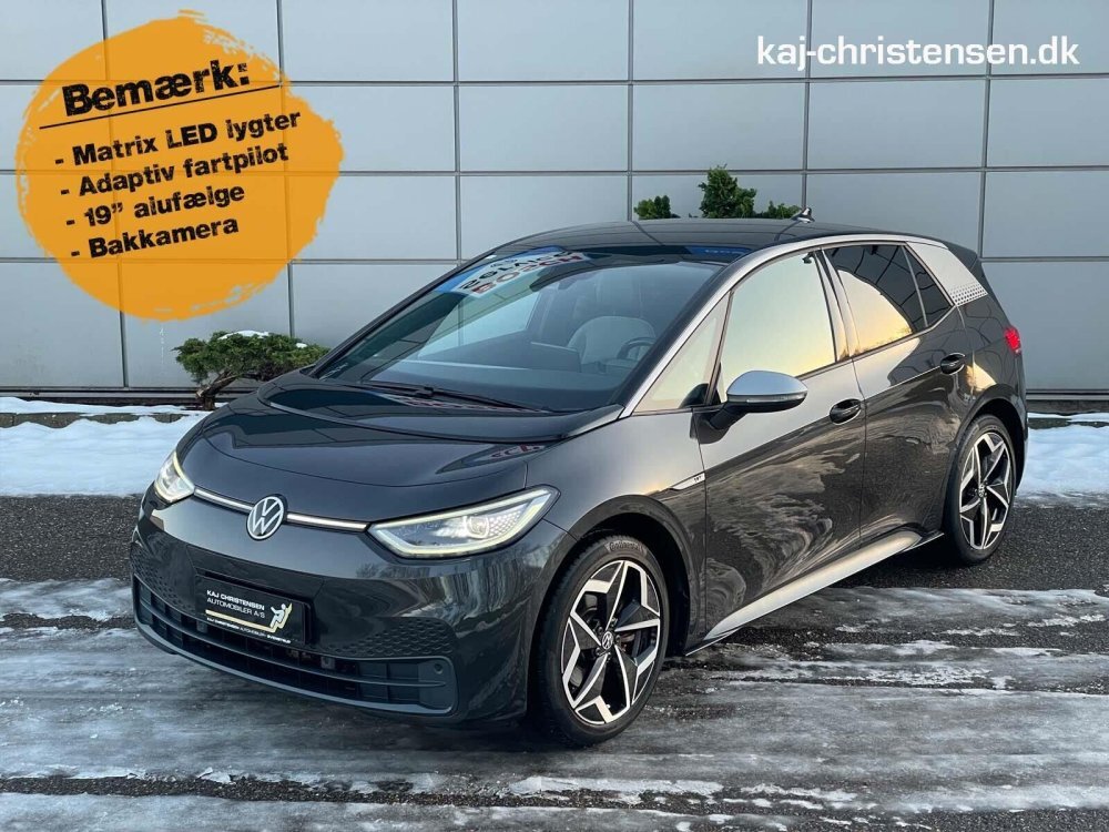 Pæn og velholdt VW id.3 her den den elegante Mangangrau metallic lakering med sort tag.