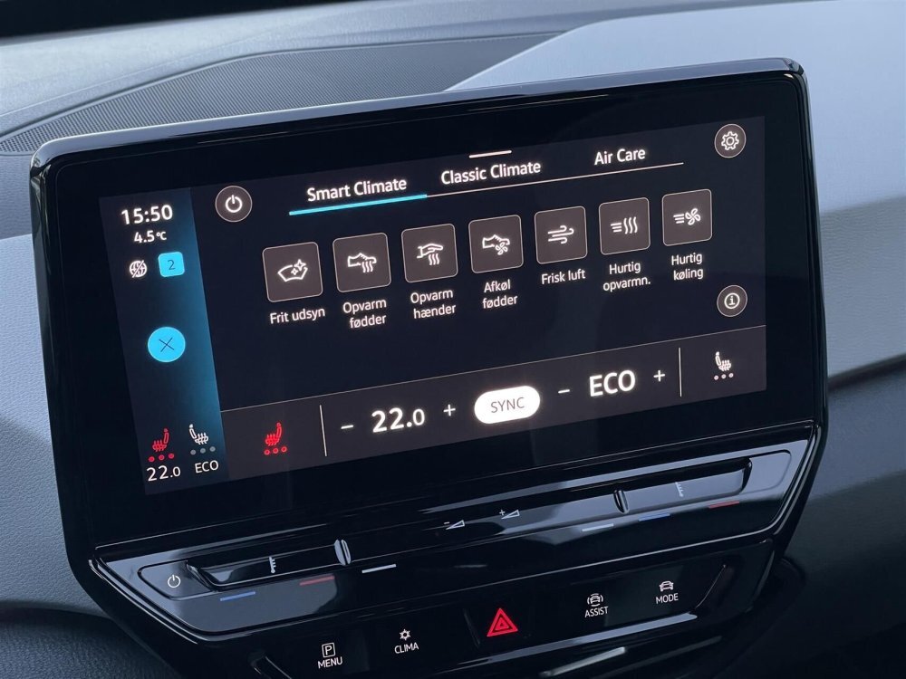 elektrisk kabinevarmer med styring via app, adaptiv fartpilot, 2 zone klima, 4x el-ruder, apple carplay, android auto, navigation, håndfrit til mobil, musikstreaming via bluetooth, usb-c tilslutning, regnsensor, parkeringssensor (for), parkeringssensor (bag), airbag, træthedsregistrering, esp, automatisk lys, skiltegenkendelse, dæktryksmåler, isofix, fjernlysassistent, vognbaneassistent, udv. temp. måler, aut. nedbl. bakspejl, sædevarme, el-klapbare sidespejle m/varme, kurvelys, splitbagsæde, ambiente belysning, højdejust. førersæde, læderrat, tågelygter, mørktonede ruder i bag.