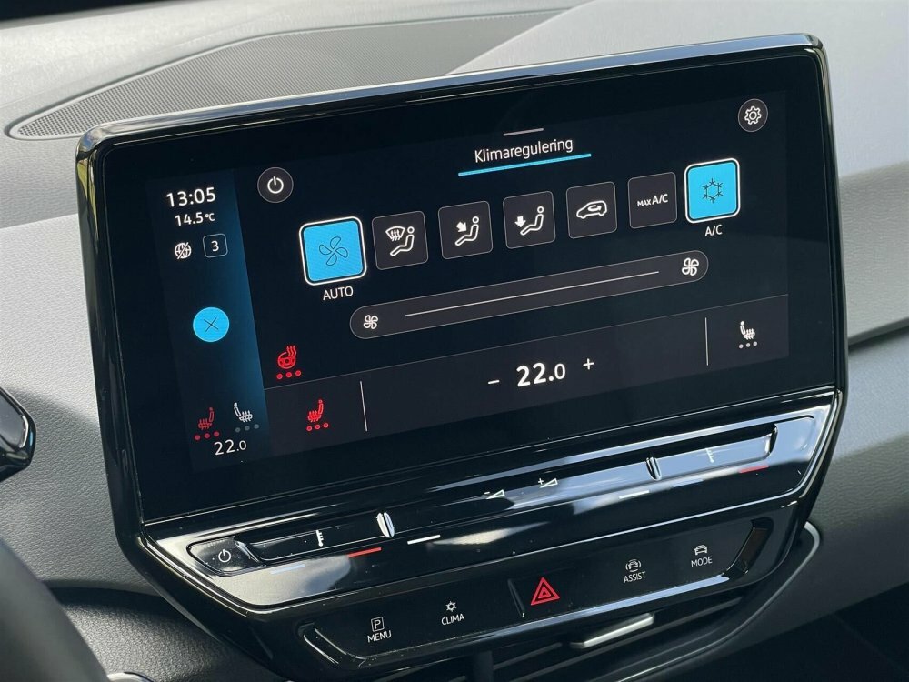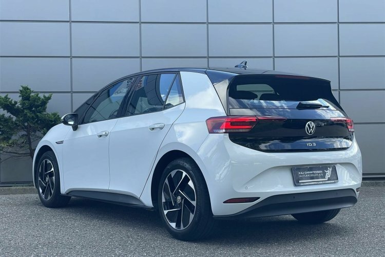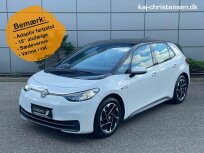 Pæn og velholdt VW Id.3 her i den smarte Gletscherweiß Metallic lakering. Bemærk versionen med 204 hk som samtidig har 3 faset hjemme opladning samt hurtigere offentlig hurtig opladning.