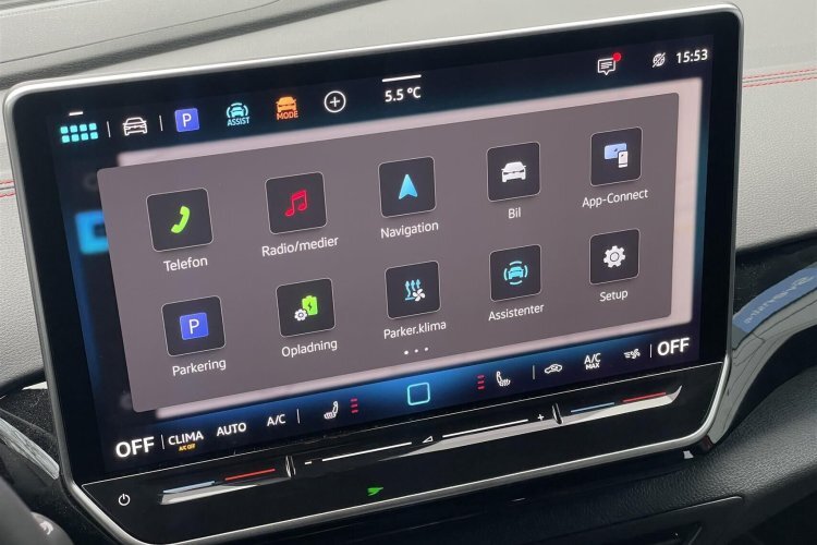 20" alufælge, matrix led forlygter, tågelygter, kurvelys, led baglygter, mørktonede ruder i bag, el-klapbare sidespejle m/varme, dynamisk blinklys i bag, tagræling, områdebelysning, nøglefri tænding, automatgear, udv. temp. måler, 4x el-ruder, varme i rat, adaptiv fartpilot, aut. nedbl. bakspejl, sædevarme, trådløs mobilopladning, navigation, håndfrit til mobil, apple carplay, android auto, dab+ radio, usb-c tilslutning, airbag, blindvinkelsassistent, esp, automatisk lys, parkeringssensor (for), parkeringssensor (bag), regnsensor, dæktryksmåler, skiltegenkendelse, isofix, fjernlysassistent, vognbaneassistent, manuel forvarmning af batteri, mørk loftbeklædning, splitbagsæde, højdejust. forsæder, delkunstlæderindtræk, multifunktionsrat, dobbelt bagagerumsbund, læderrat, ambiente belysning.