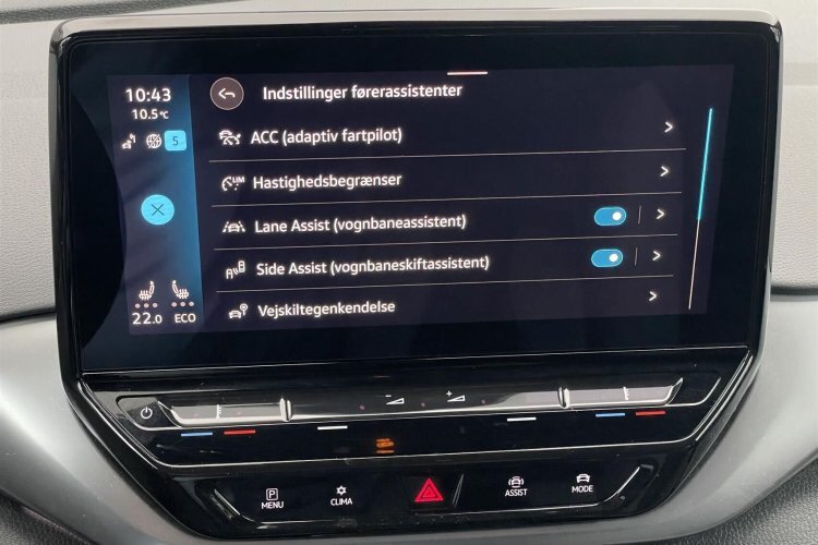 Elektrisk kabinevarmer med styring via app, navigation, apple carplay, android auto, håndfrit til mobil, dab+ radio, musikstreaming via bluetooth, usb-c tilslutning, kørecomputer, multifunktionsrat, splitbagsæde, læderrat, højdejust. førersæde, 19" alufælge, el-klapbare sidespejle m/varme, tagræling, tågelygter, 2 zone klima, udv. temp. måler, 4x el-ruder, sædevarme, trådløs mobilopladning, airbag, esp, blindvinkelsassistent, automatisk nødbremsesystem, automatisk lys, parkeringssensor (for), parkeringssensor (bag), bakkamera, dæktryksmåler, skiltegenkendelse, isofix, fjernlysassistent, vognbaneassistent, regnsensor